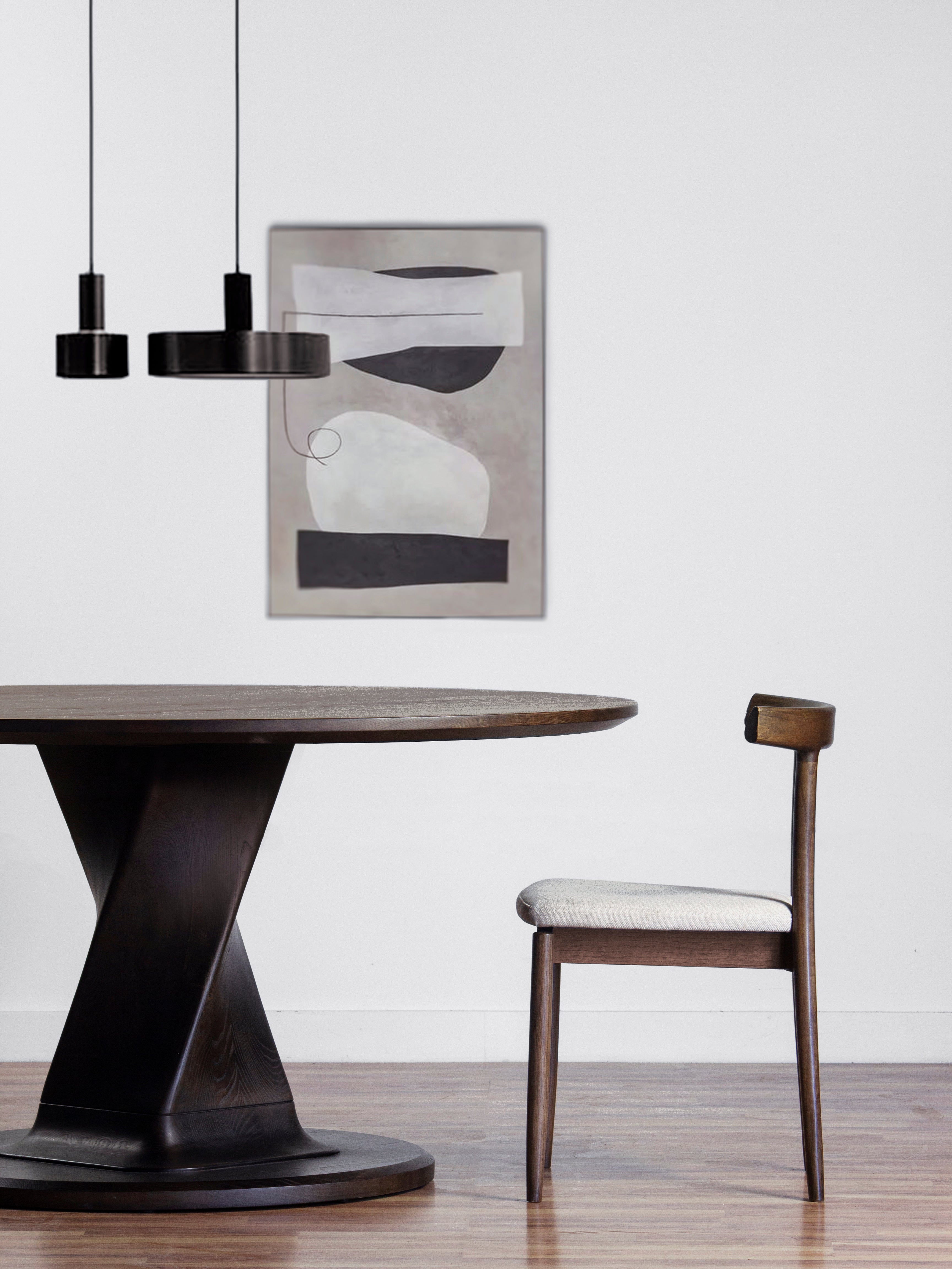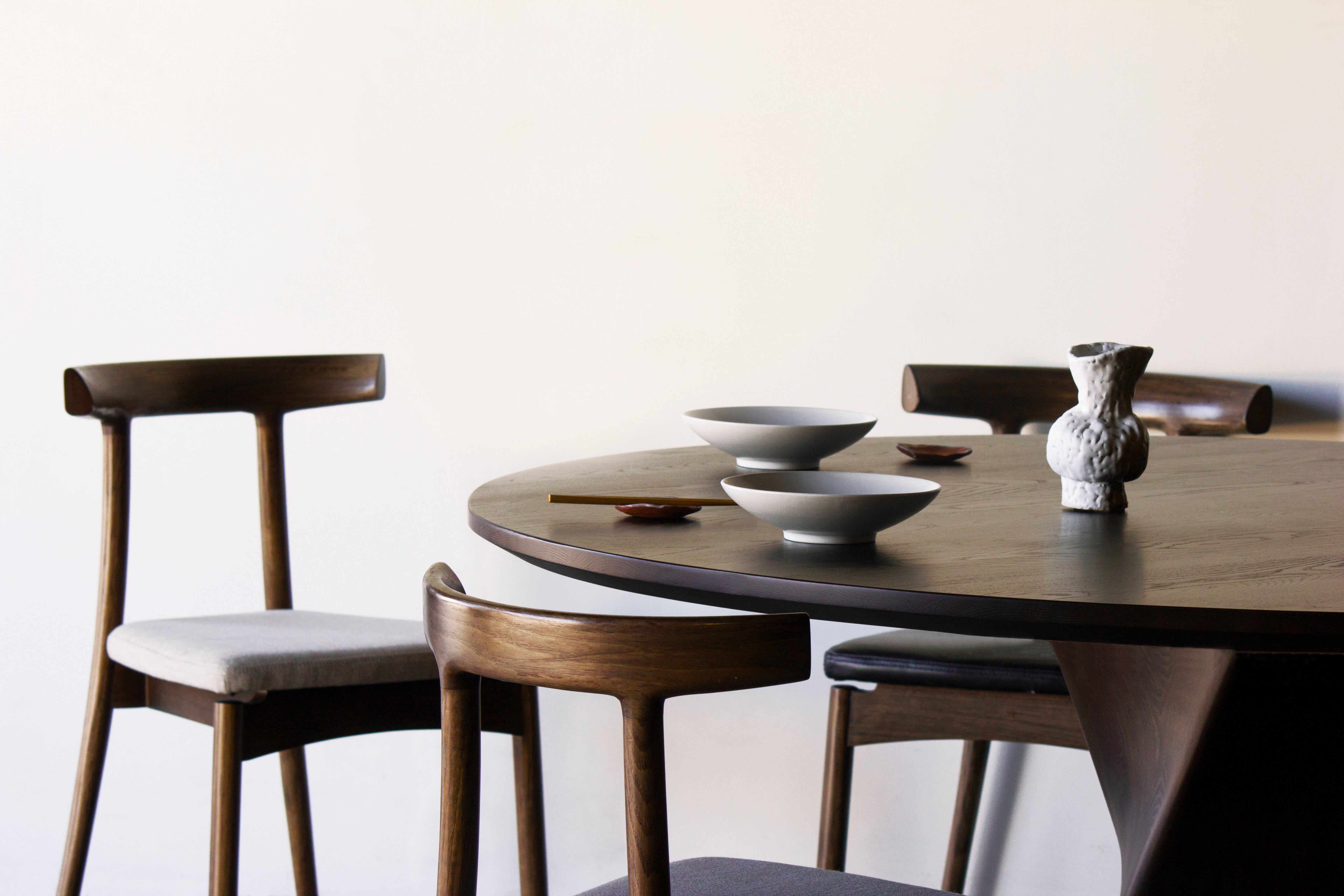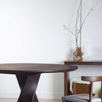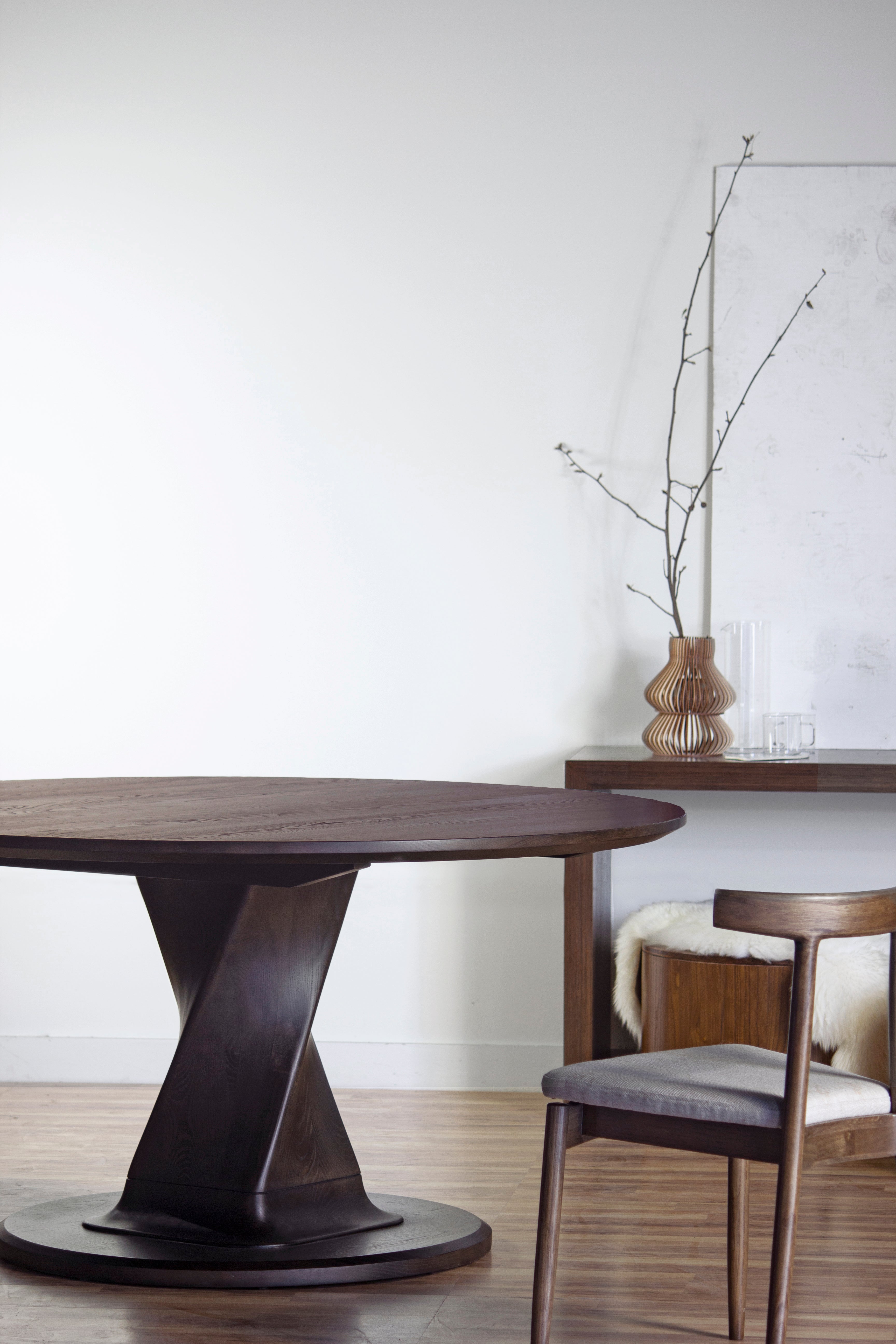 Sculpture meets furniture in the Arial Round Dining Table. It features a solid, gently curving columnar base crafted from solid white ash to ground your dining space.