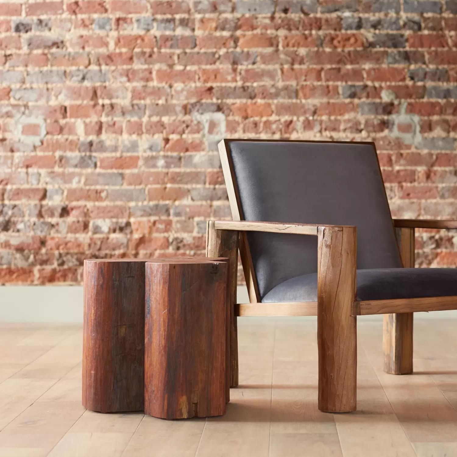 The Auburn Post accent table showcase natural, rustic wood logs and exquisite butterfly joinery. The wood is reclaimed Elm torn down from remote mountain villages, which makes each piece unique and one-of-a-kind.