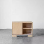 The Fen Nightstand features a sliding door that can be positioned on either side to both hide bedroom necessities while keeping treasures on display. Its minimalist form creates a a sense of serenity and quiet beauty. Available in 24", 30", and 36" widths.