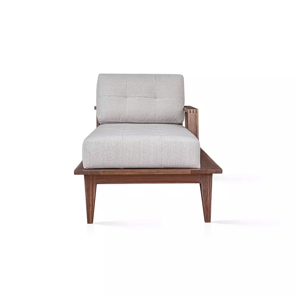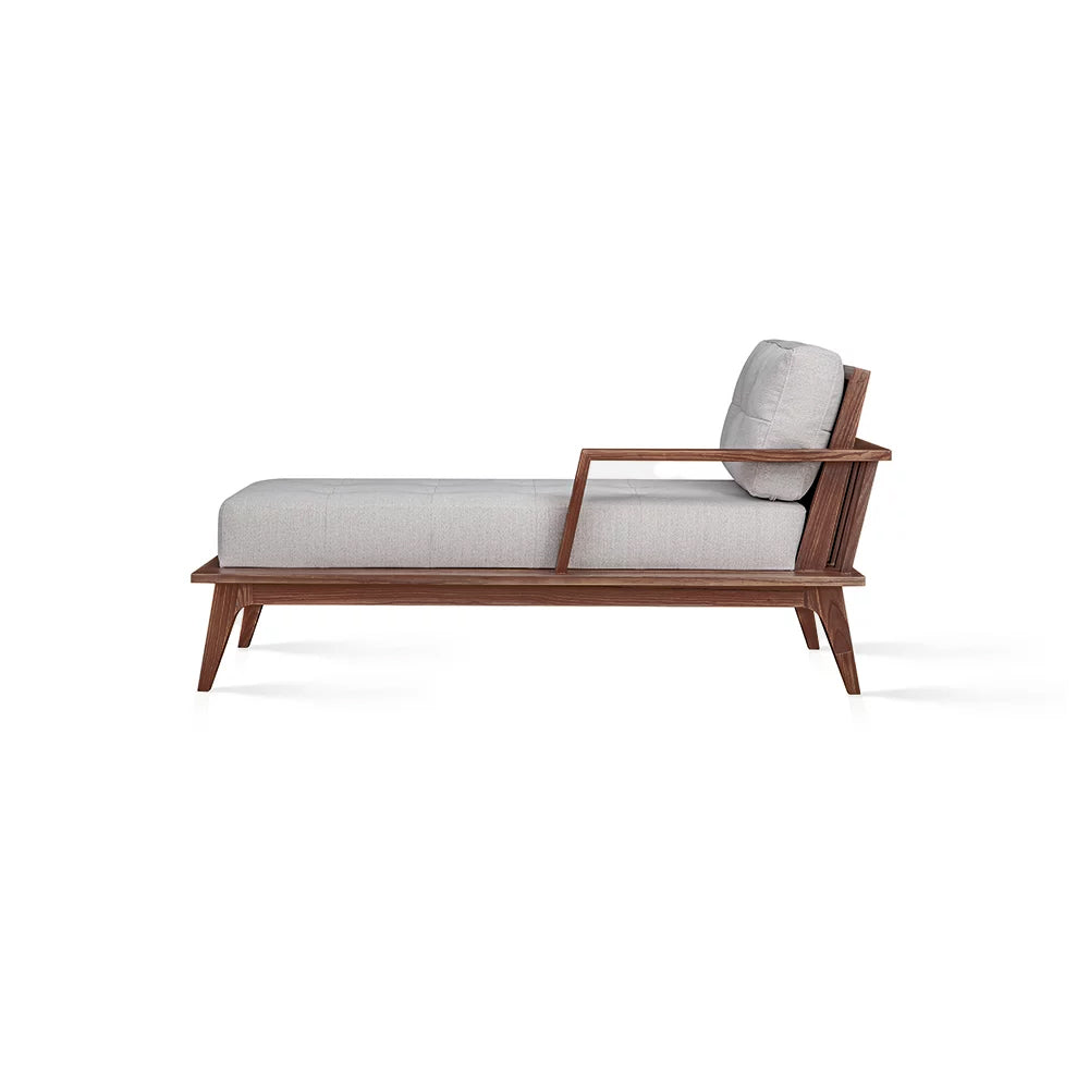 The bold Katsura Collection is inspired by the understated luxury of Asian heritage palace architecture that combines both feelings of modern and traditional design. This stunning chaise features solid white ash legs, back, and arms accompanied by our BreathingJoinery™ system; it is handcrafted so precisely that no nails or screws are needed. The plush comfort of these fabric cushions combined with the sleek look and feel of the slatted wood frame make this chaise a breathtaking addition to any living space.