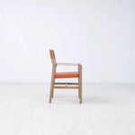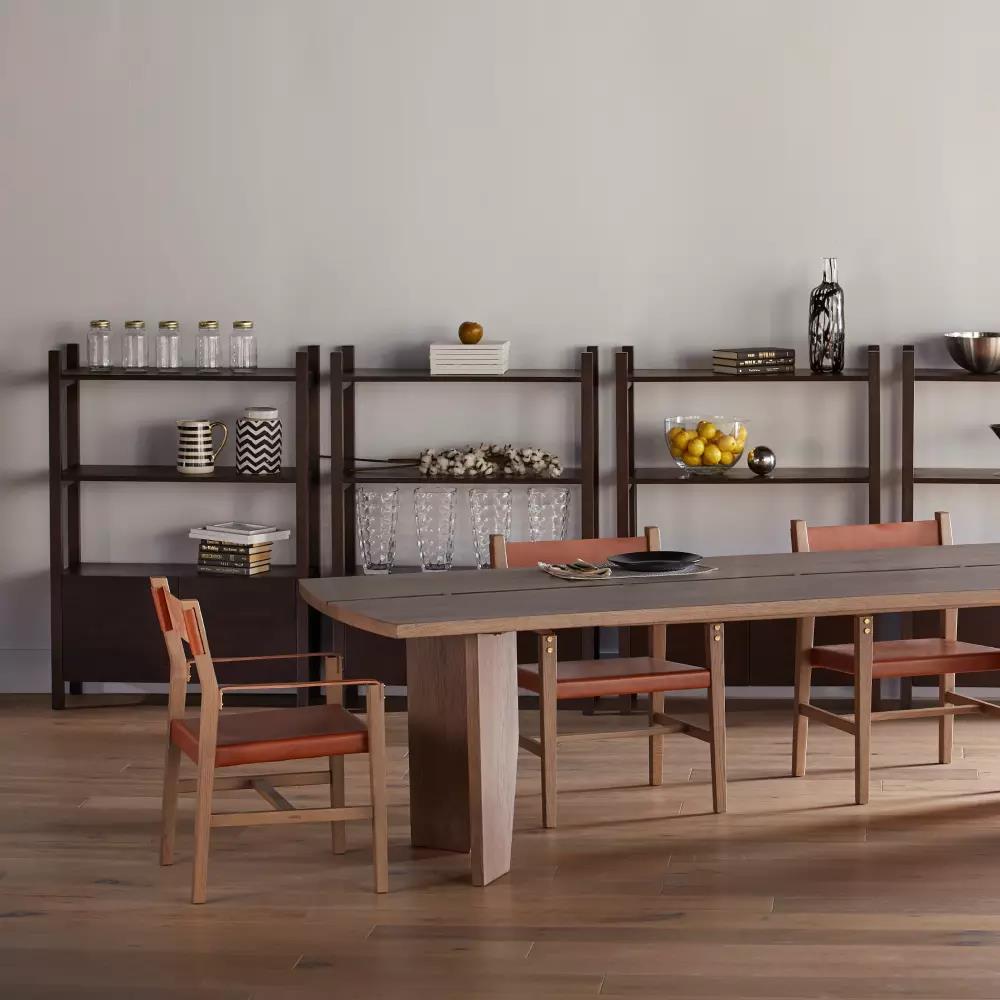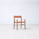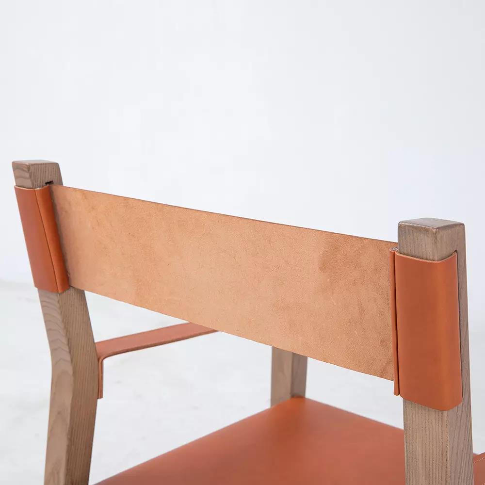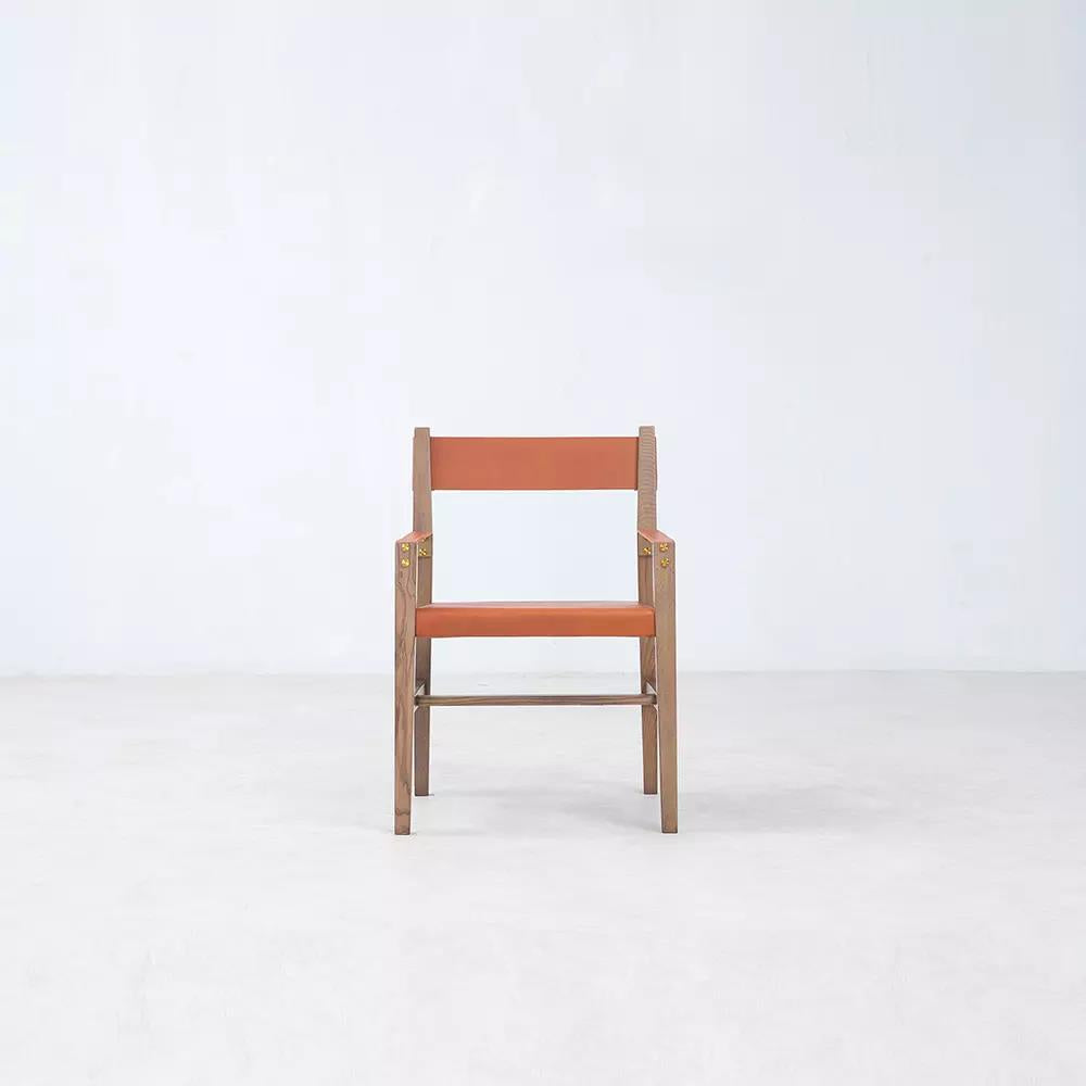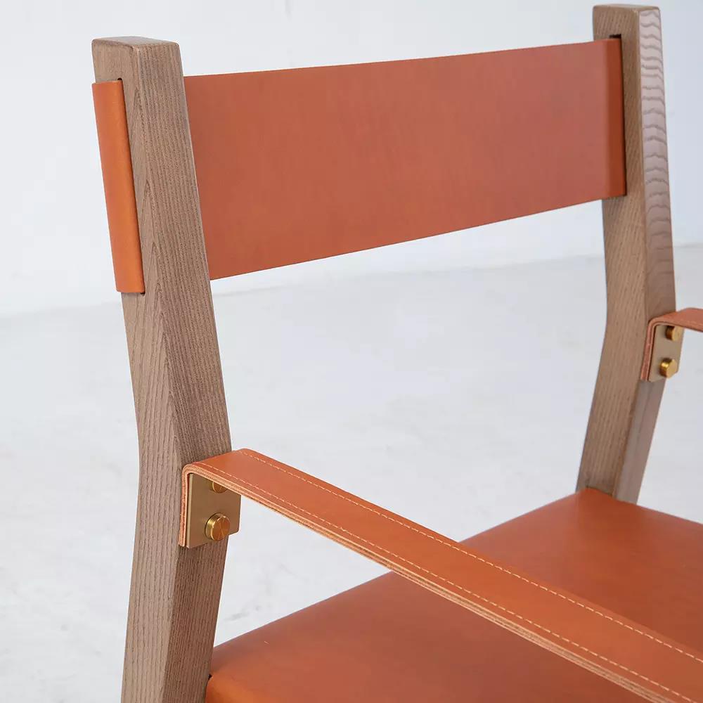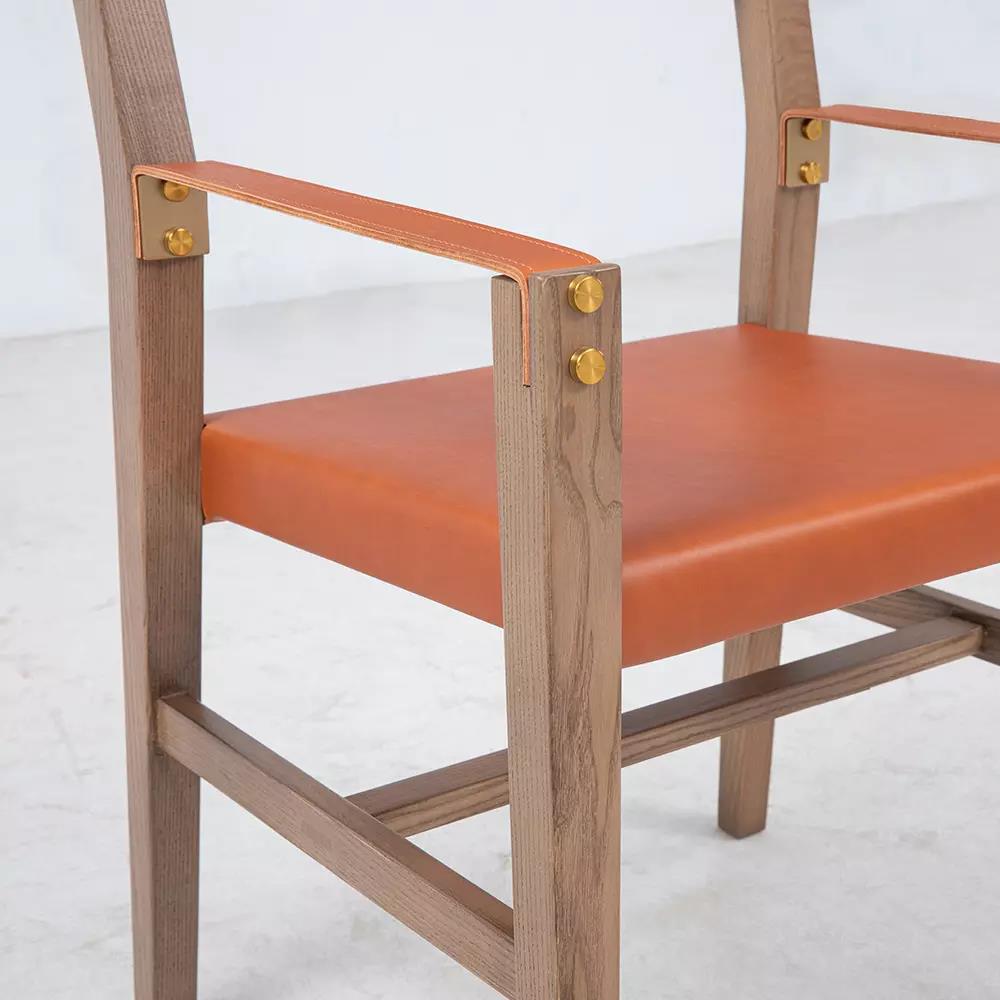 A seamless play of materials, the Kent Armchair weaves together solid white ash and thick full grain leather with elegant joinery and fine brass finished steel hardware to make a uniquely charming dining chair. The premium leather is carefully looped through the wood sections and suspended in tension to form the relaxed back and clever armrests with glistening details in brass. The Kent Armchair makes for graceful and comfortable dining seating.