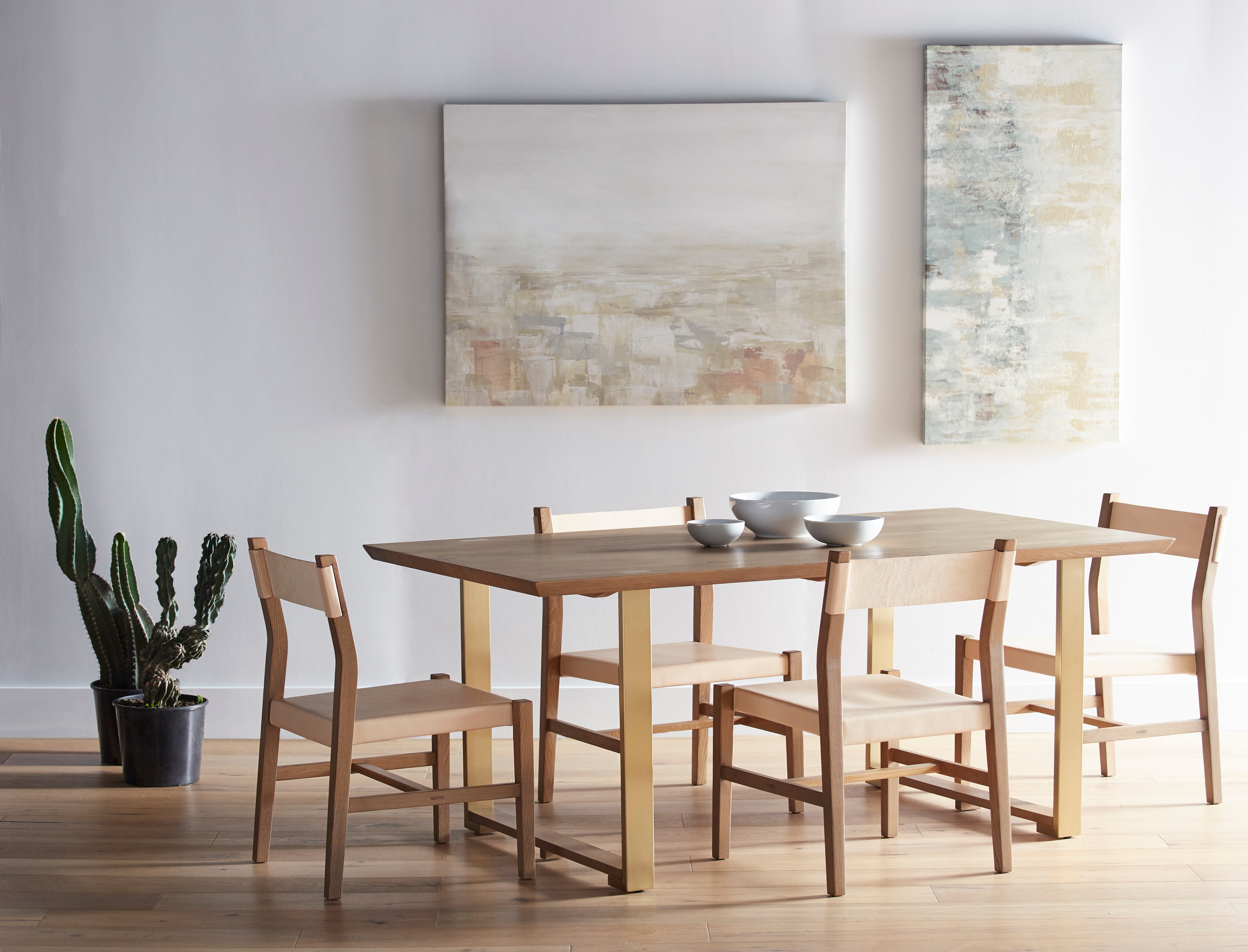 A seamless play of materials, the Kent Side Chair weaves together solid FSC® certified white ash and thick full grain leather with elegant joinery to make a uniquely charming dining chair. The premium leather is carefully looped through the wood sections and suspended in tension to form the relaxed back and all leather seat. The Kent Side Chair makes for graceful and comfortable dining seating.