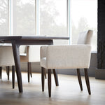 Inspired by strong lines found in architectural structures, the Merced collection features curves and powerful edges that give each piece a unique and classic elegance. This elegant armchair is a statement in luxury and subtle sophistication with its plush upholstery and graceful stance. Choose from our extensive range of fabrics and pair it with other pieces of the Merced collection to complete the set.