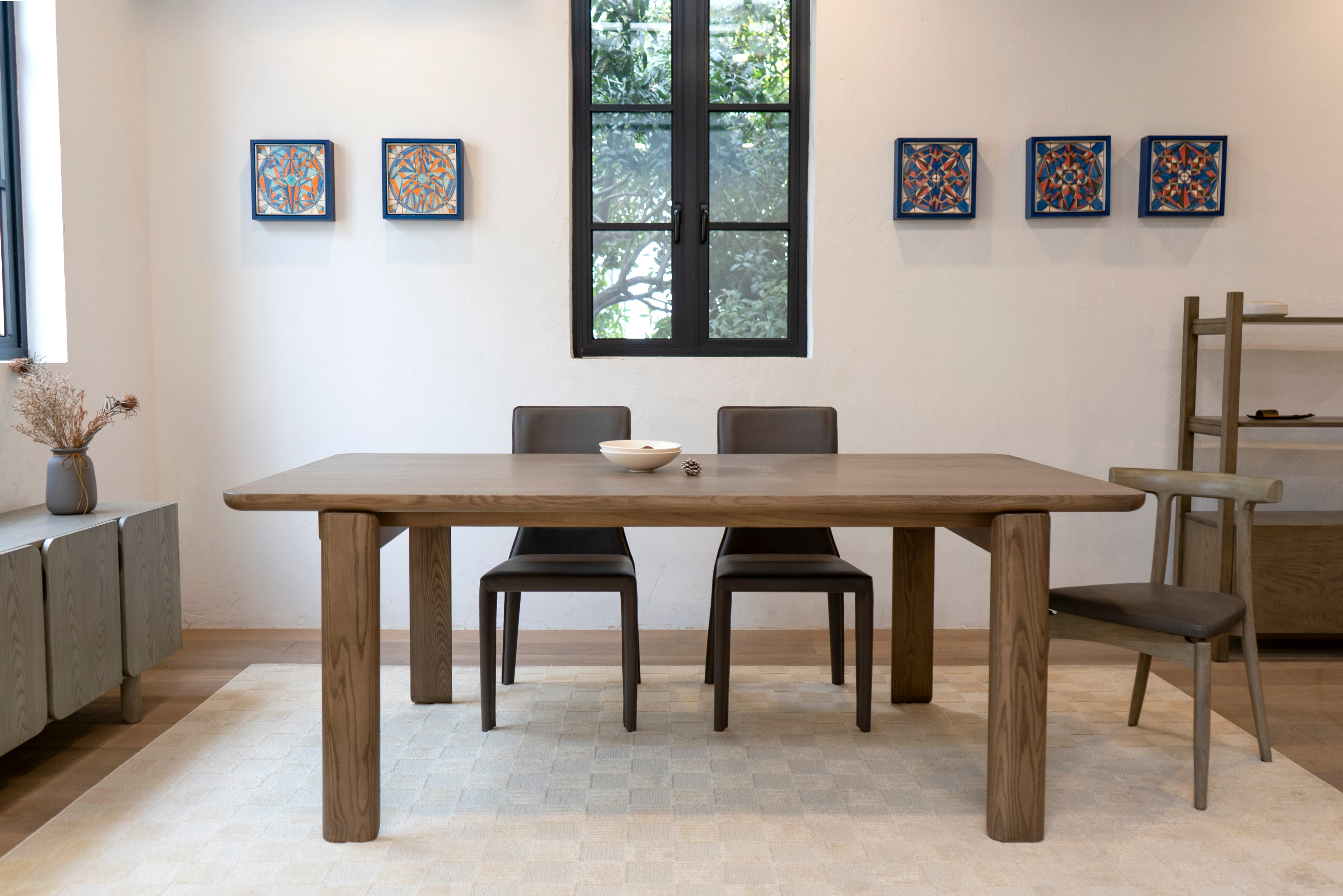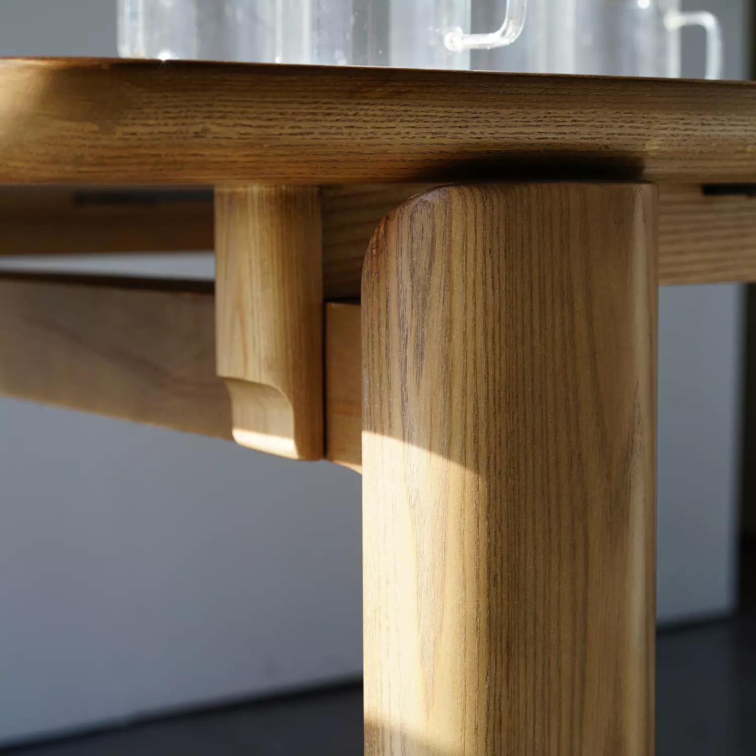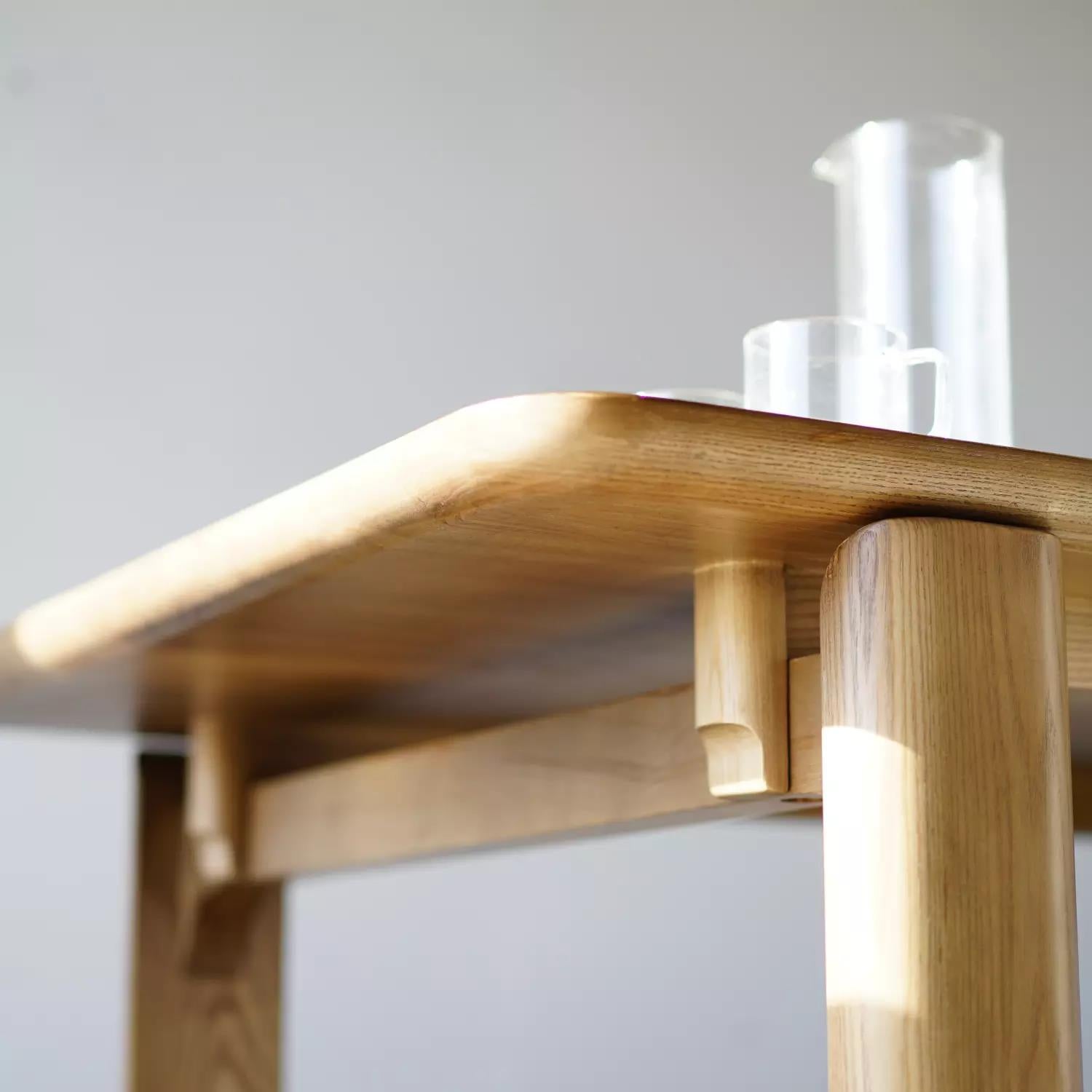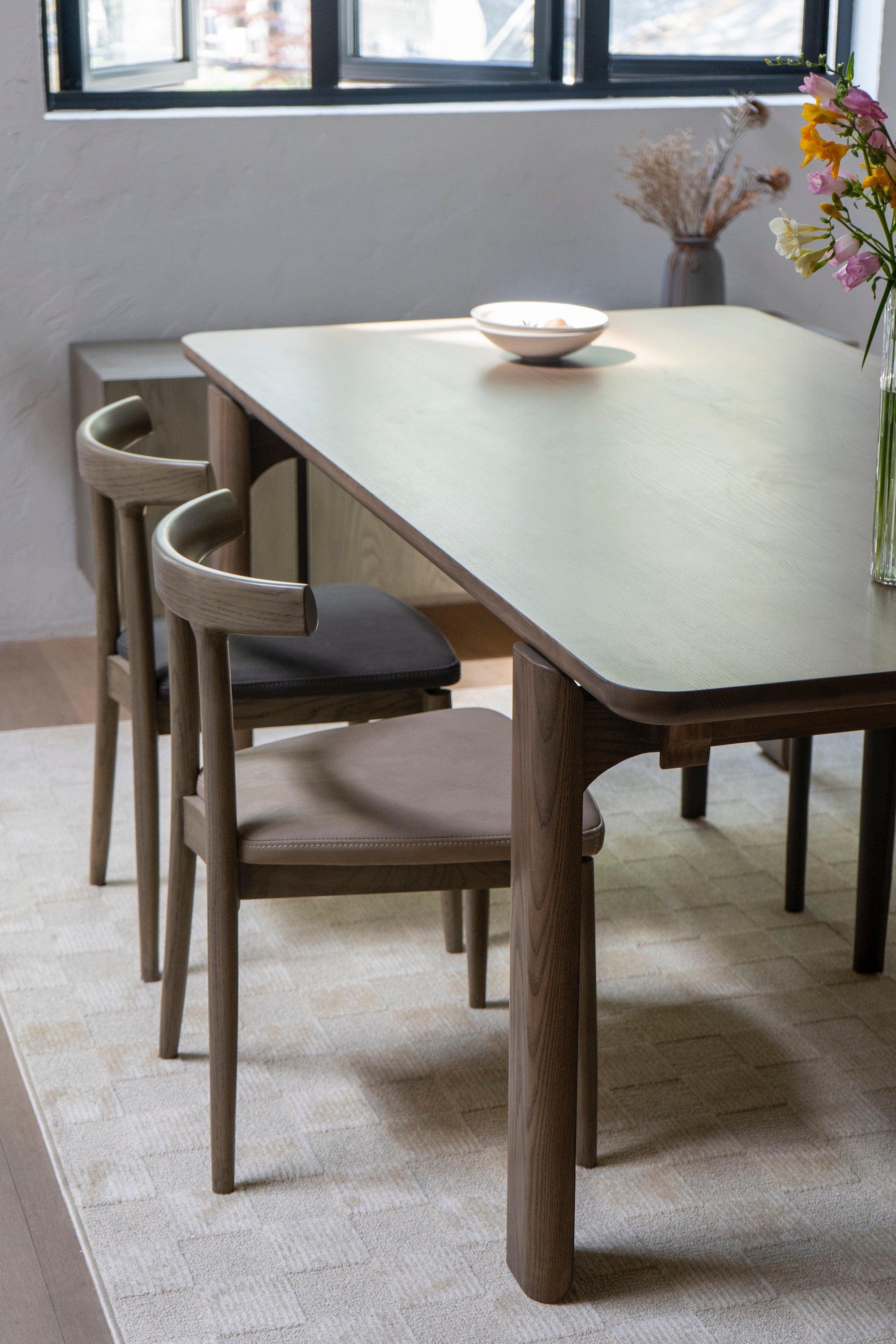 Handcrafted with American white ash, the Mesa Dining Table's gentle curves and minimal form are an elegant centerpiece for your meals and gatherings. The table top floats gently off each leg for truly timeless appeal.