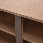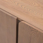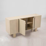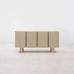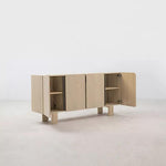 The Mesa Sideboard marries beautiful planks of white ash with elegantly tapered legs and gently curved, soft-close doors. A full grain leather inlay between the doors adds a touch of soft texture to contrast with the wood grain patterns, while the legs rest lightly on the ground for a balanced and easygoing silhouette.