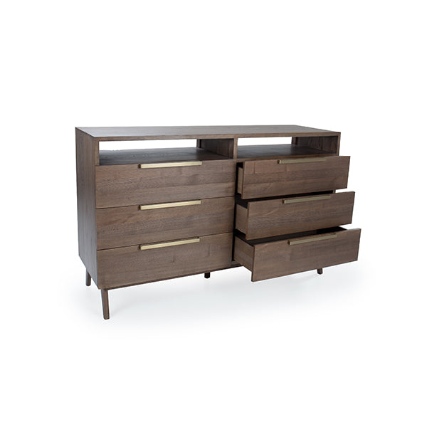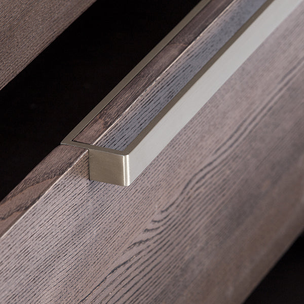 Inspired by bold architectural lines, the Napa collection exemplifies refined simplicity. It harmoniously joins wood and metal to bring out the beauty of material and craftsmanship. Custom made, intricately inlaid custom brass pulls round out the design.
