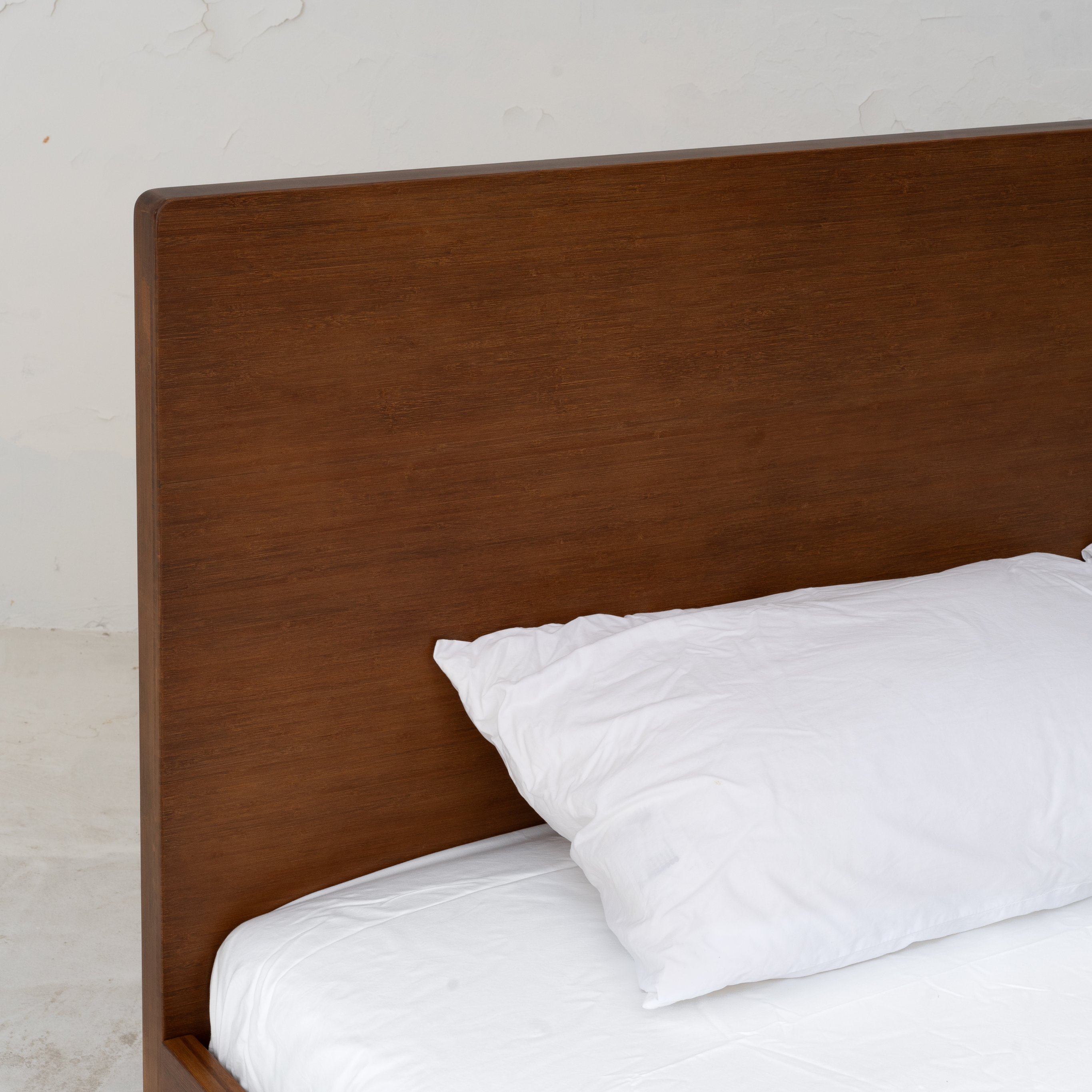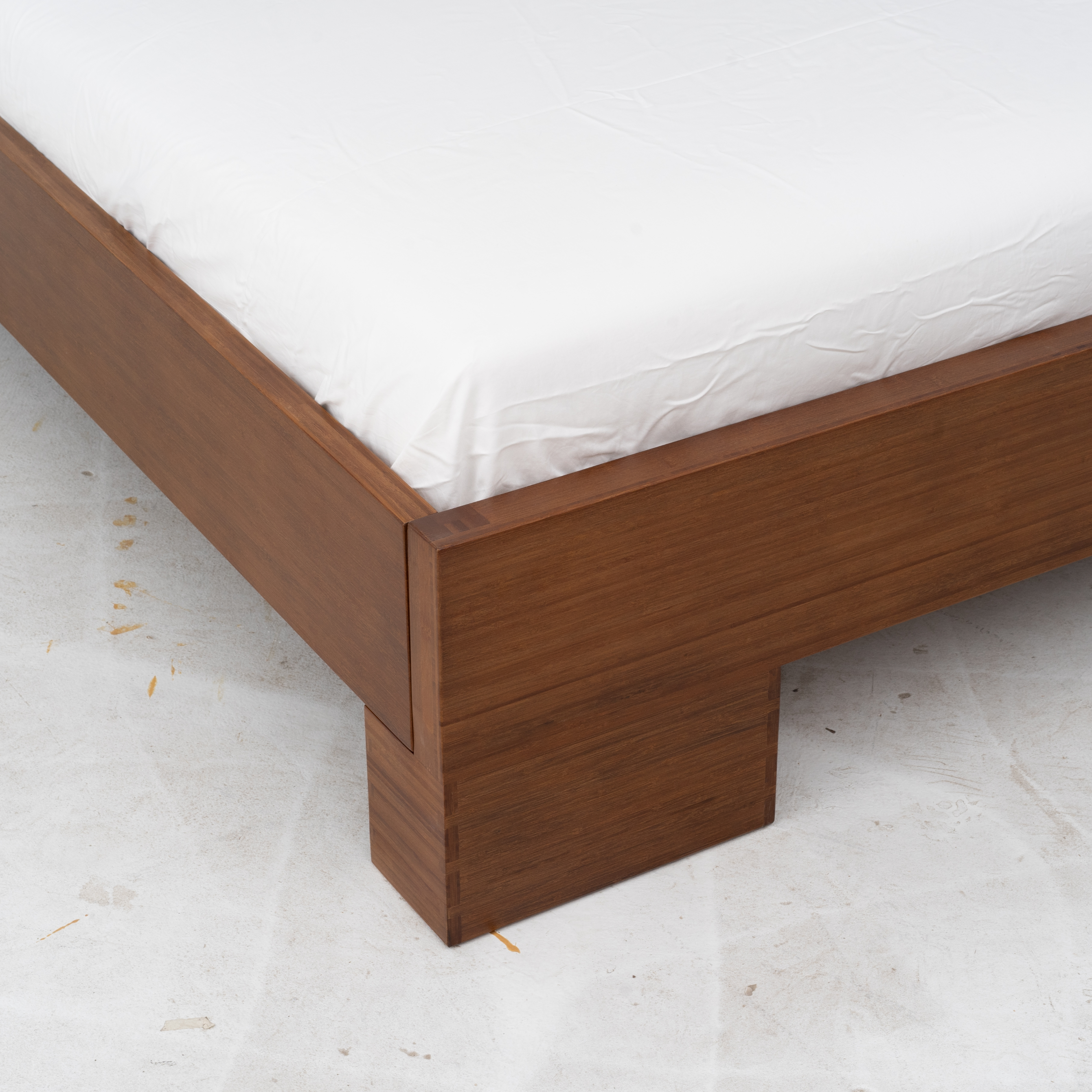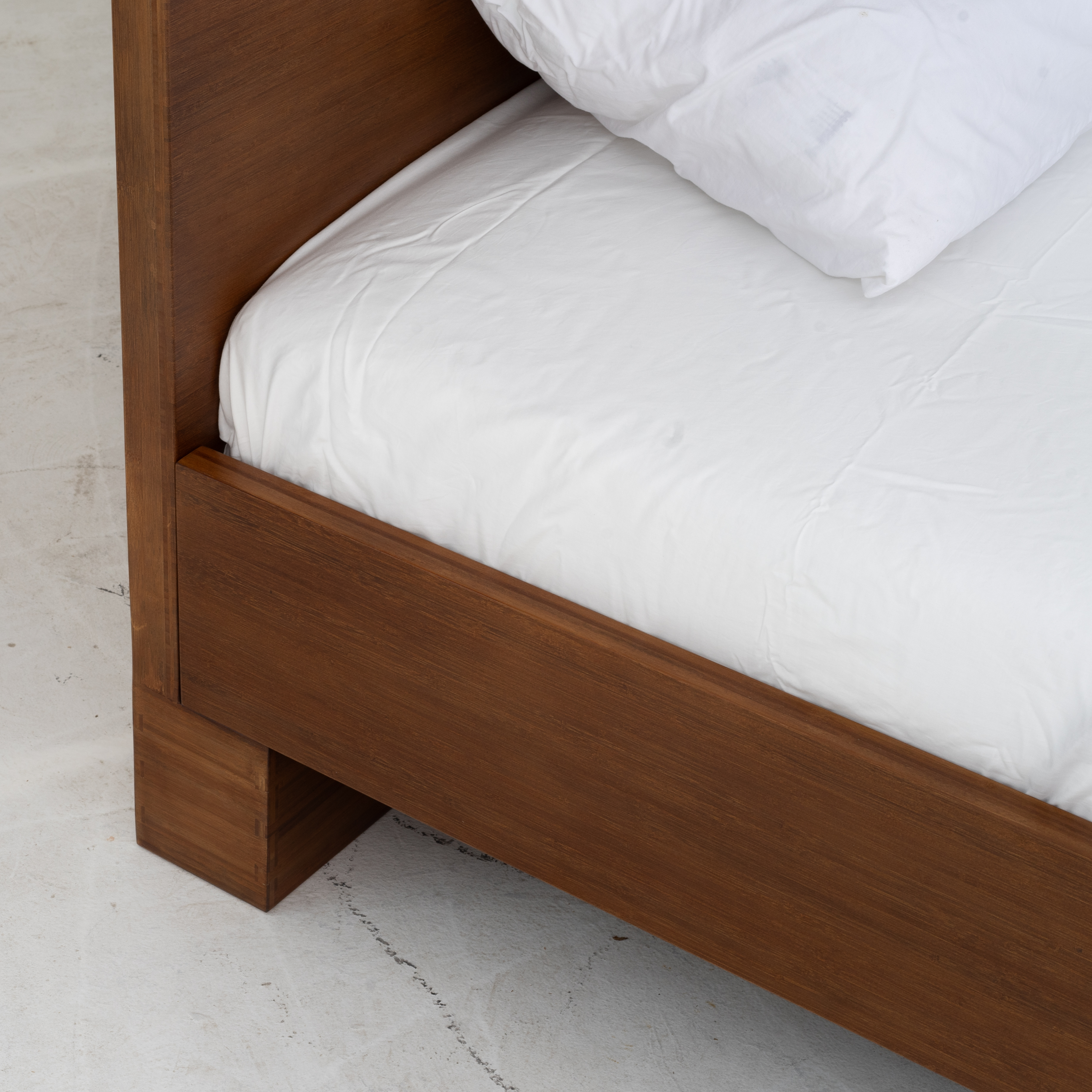 The Fen Bed rests gently on box-style feet handcrafted with extreme precision using dovetail joinery. A warm, steady feeling emanates from this solid bamboo piece, featuring a wide headboard perfect for lounging in bed. Available in Queen and King size.