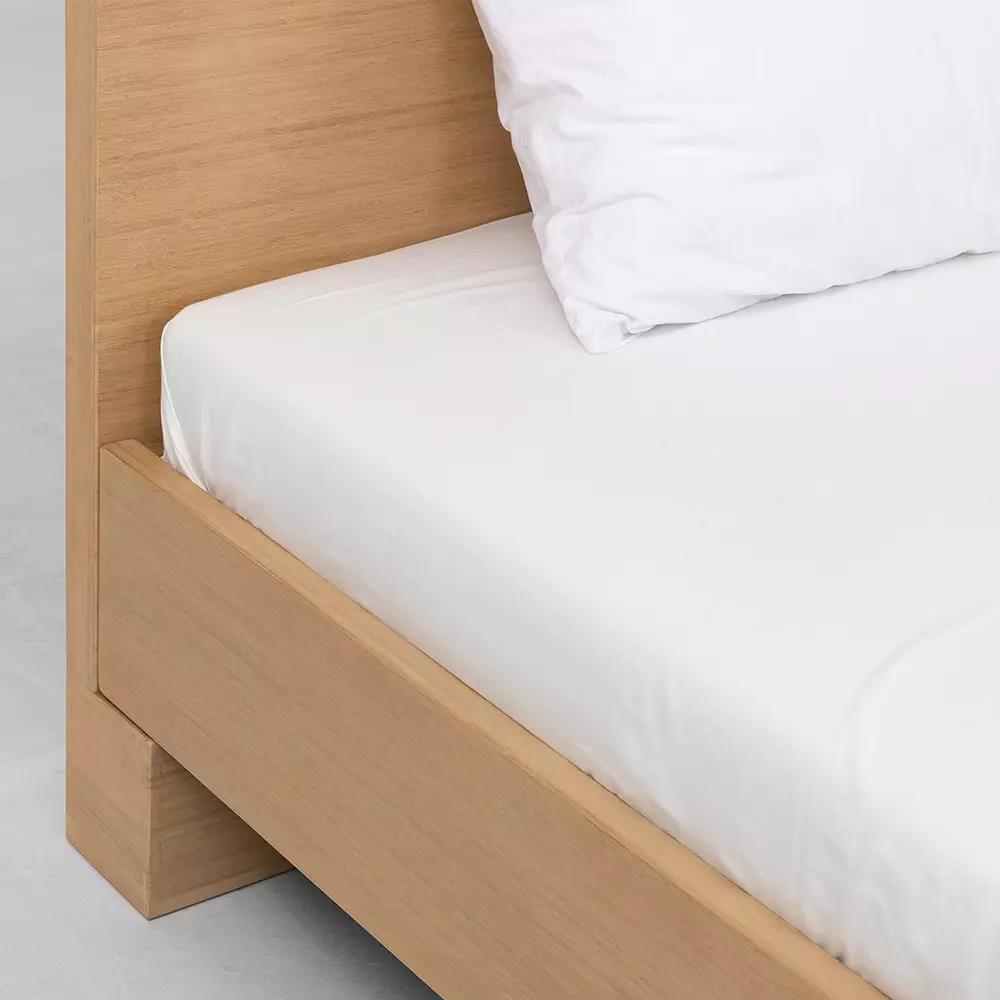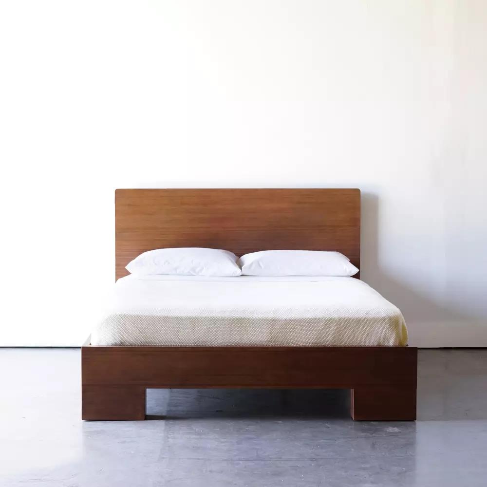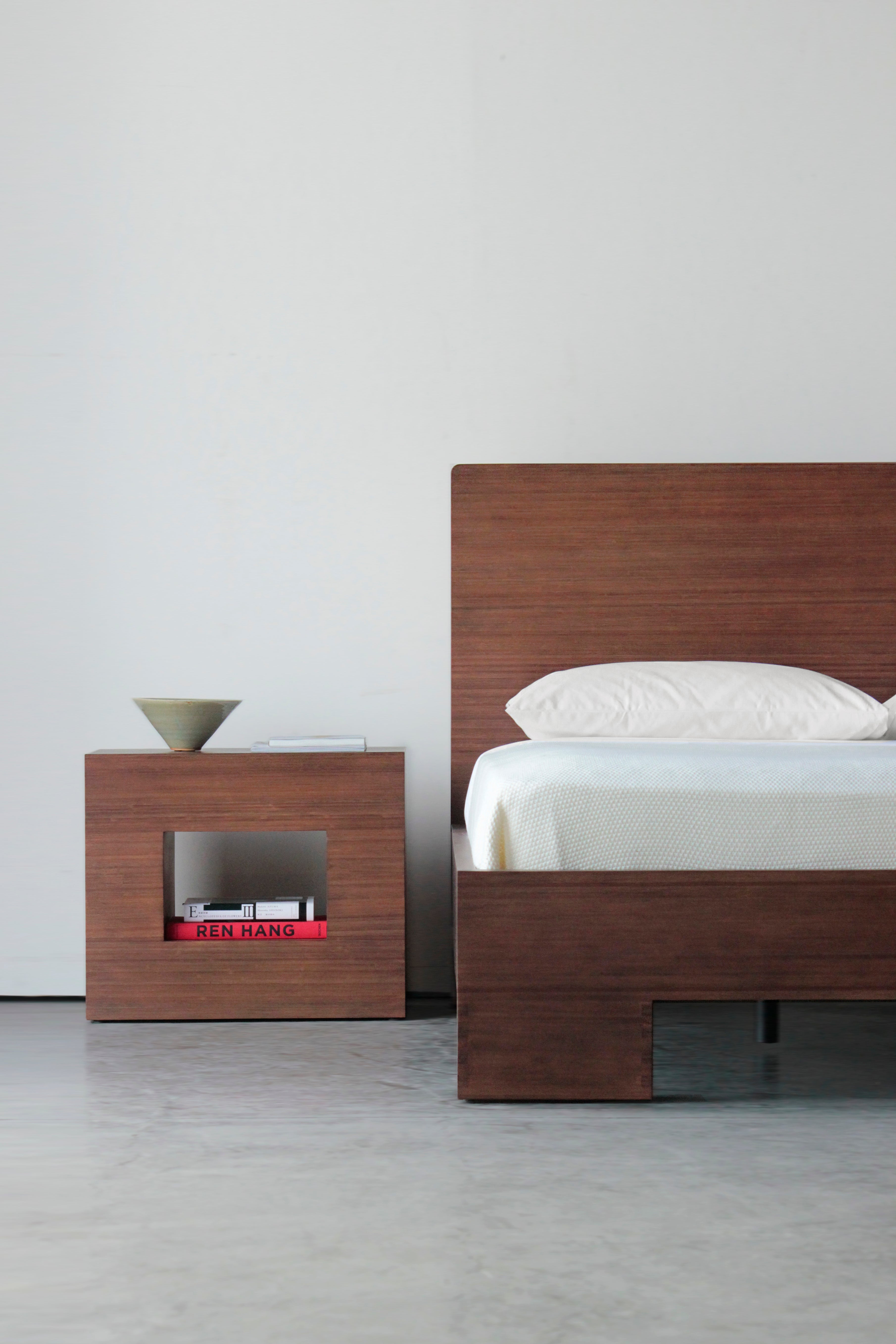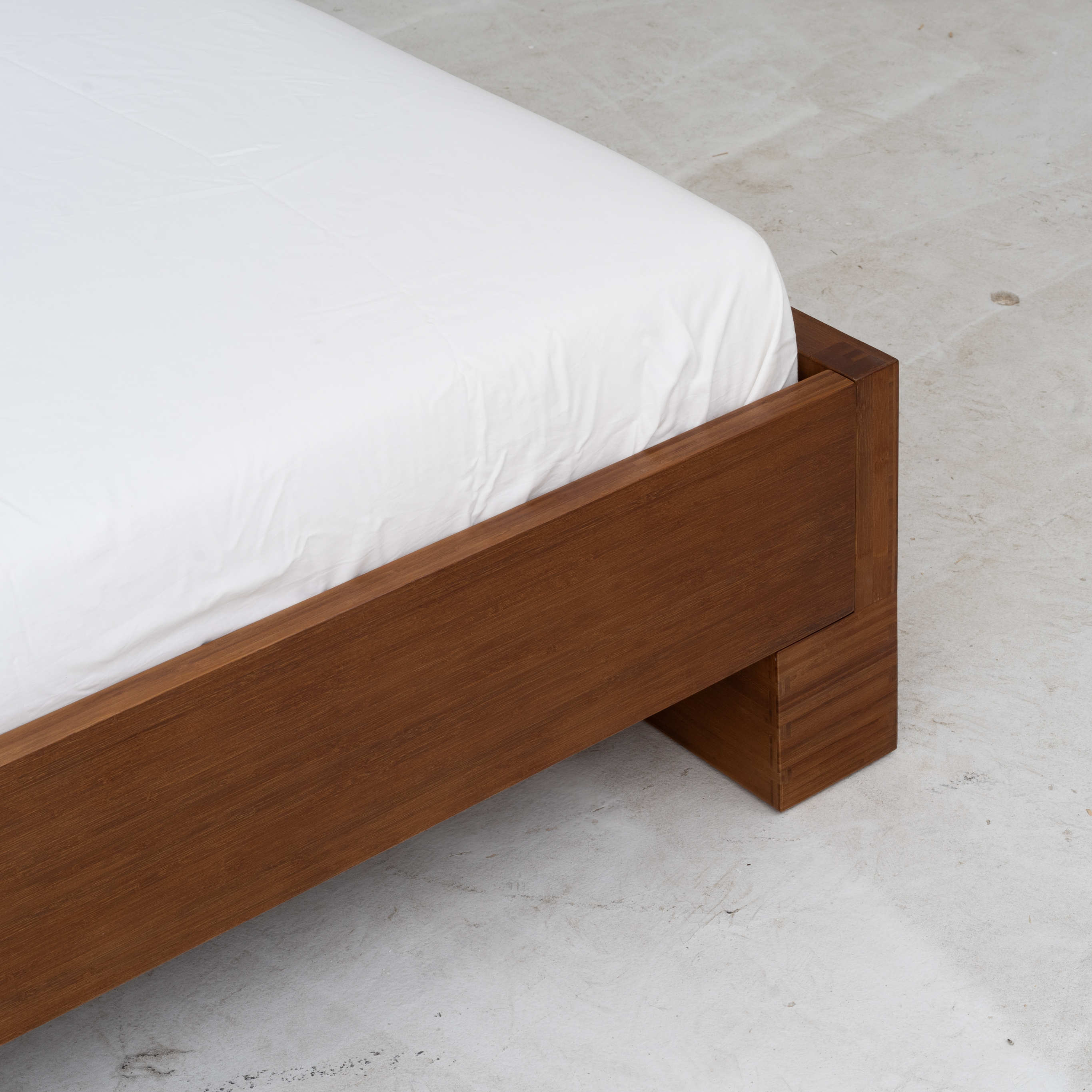 The Fen Bed rests gently on box-style feet handcrafted with extreme precision using dovetail joinery. A warm, steady feeling emanates from this solid bamboo piece, featuring a wide headboard perfect for lounging in bed. Available in Queen and King size.