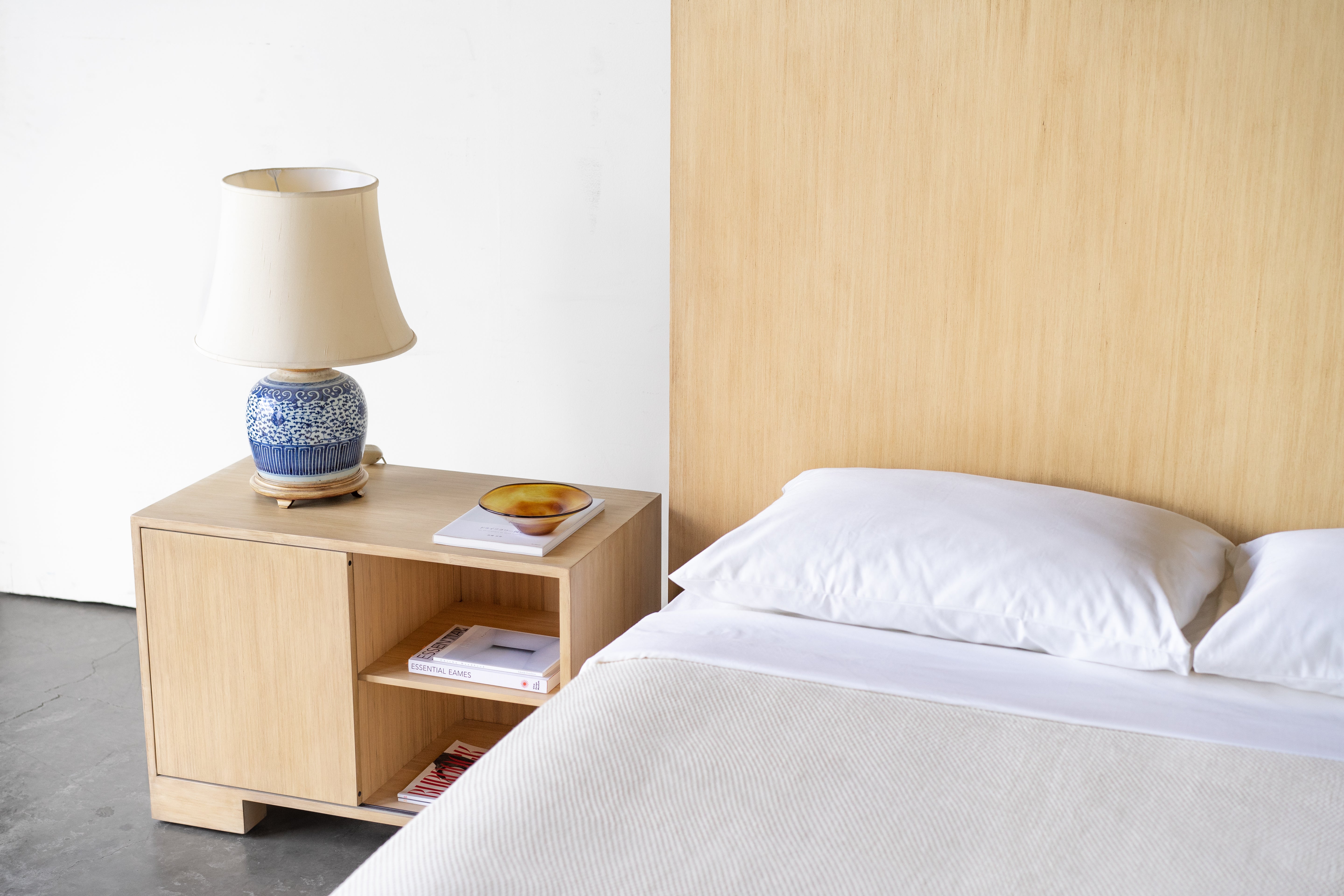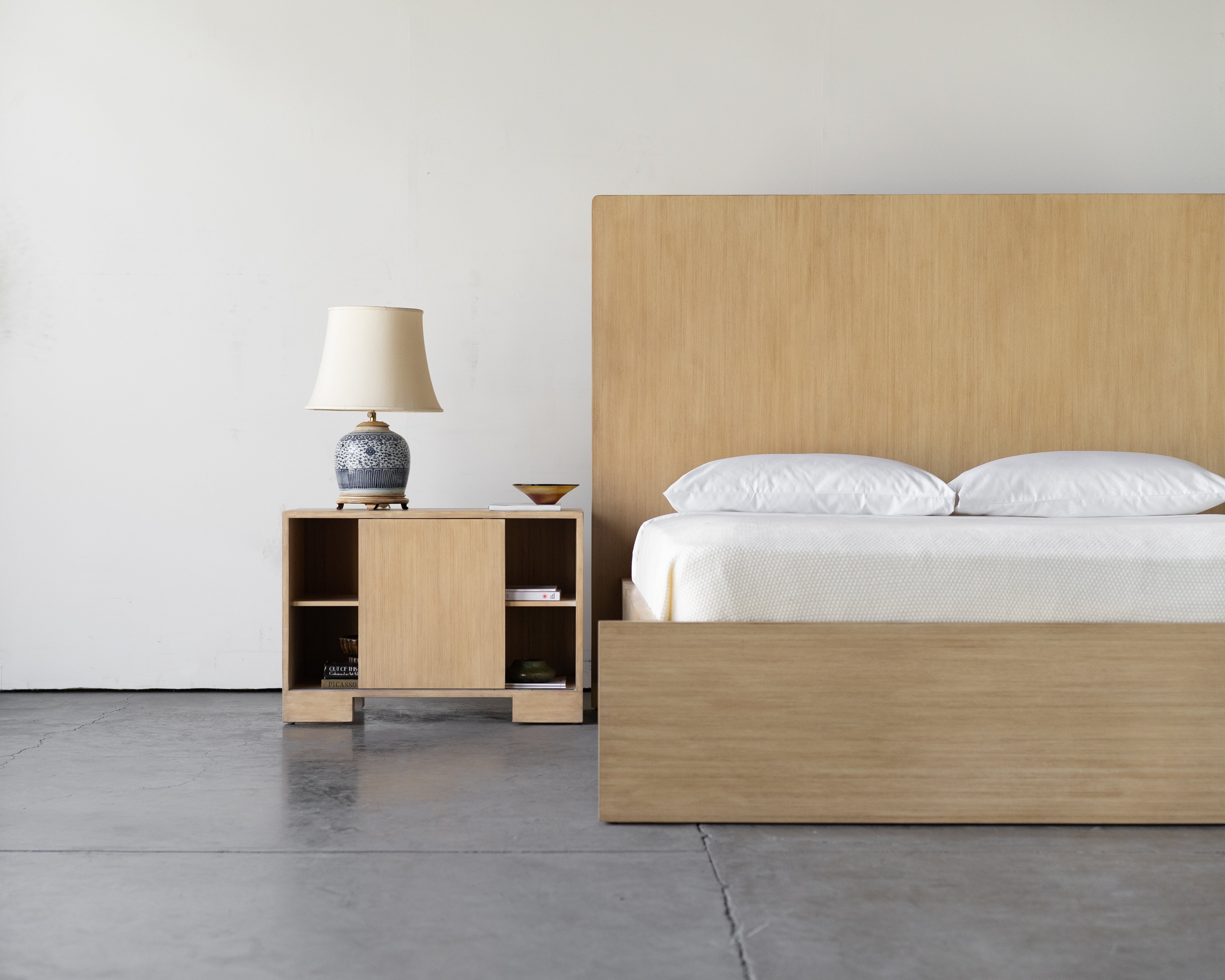 The Fen Nightstand features a sliding door that can be positioned on either side to both hide bedroom necessities while keeping treasures on display. Its minimalist form creates a a sense of serenity and quiet beauty. Available in 24", 30", and 36" widths.