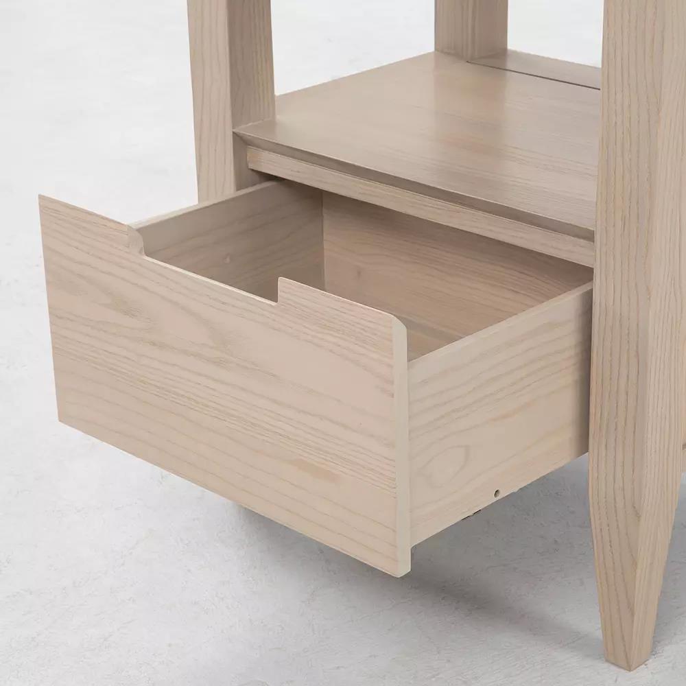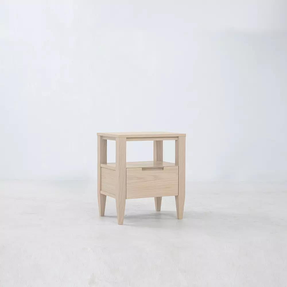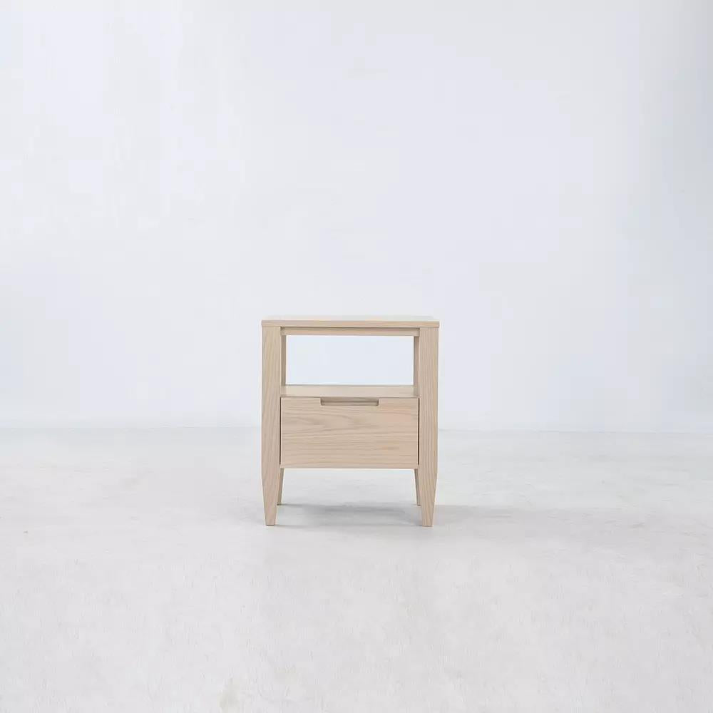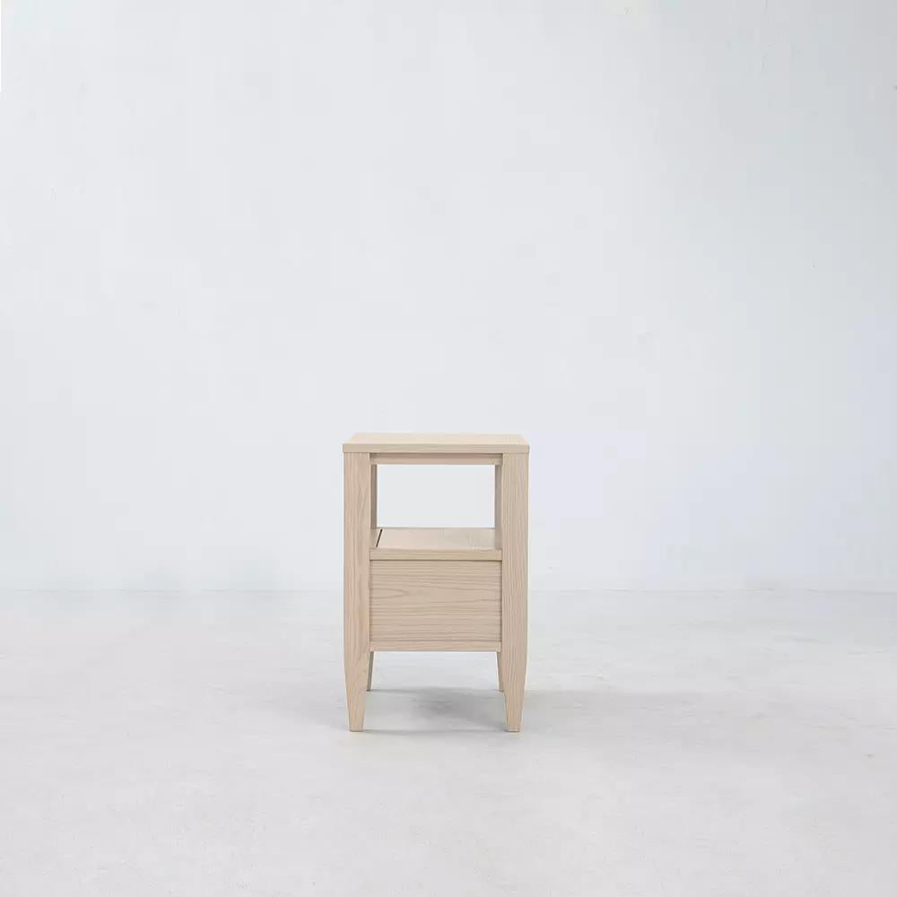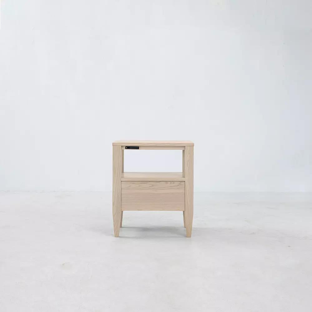 The bold Katsura Collection is inspired by the understated luxury of Asian heritage palace architecture that combines both feelings of modern and traditional design. The Katsura 24" Nightstand features open storage and a drawer unit that is elevated off of tapered legs giving an impression of a floating compartment. Each of our products is unique due to the wood grain variation and hand crafted techniques. Exalt elegance in any bedroom when combined with another Katsura piece or Maria Yee furnishing.