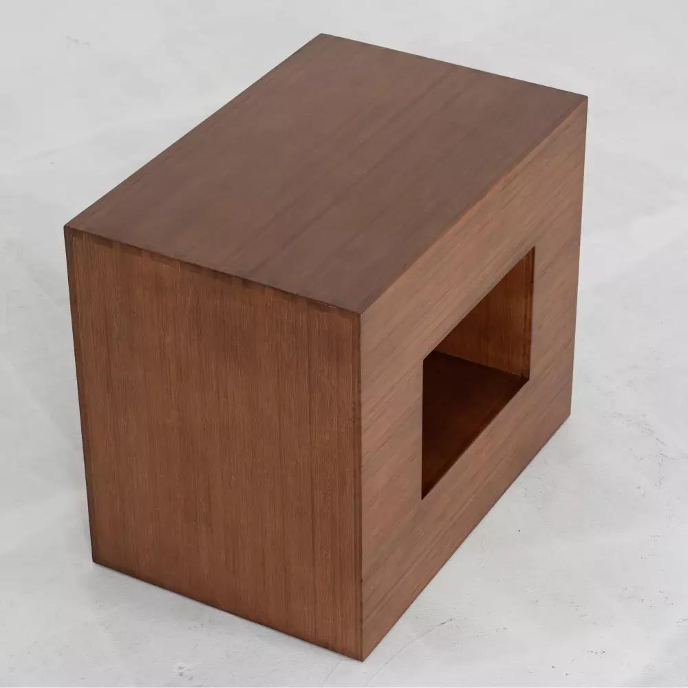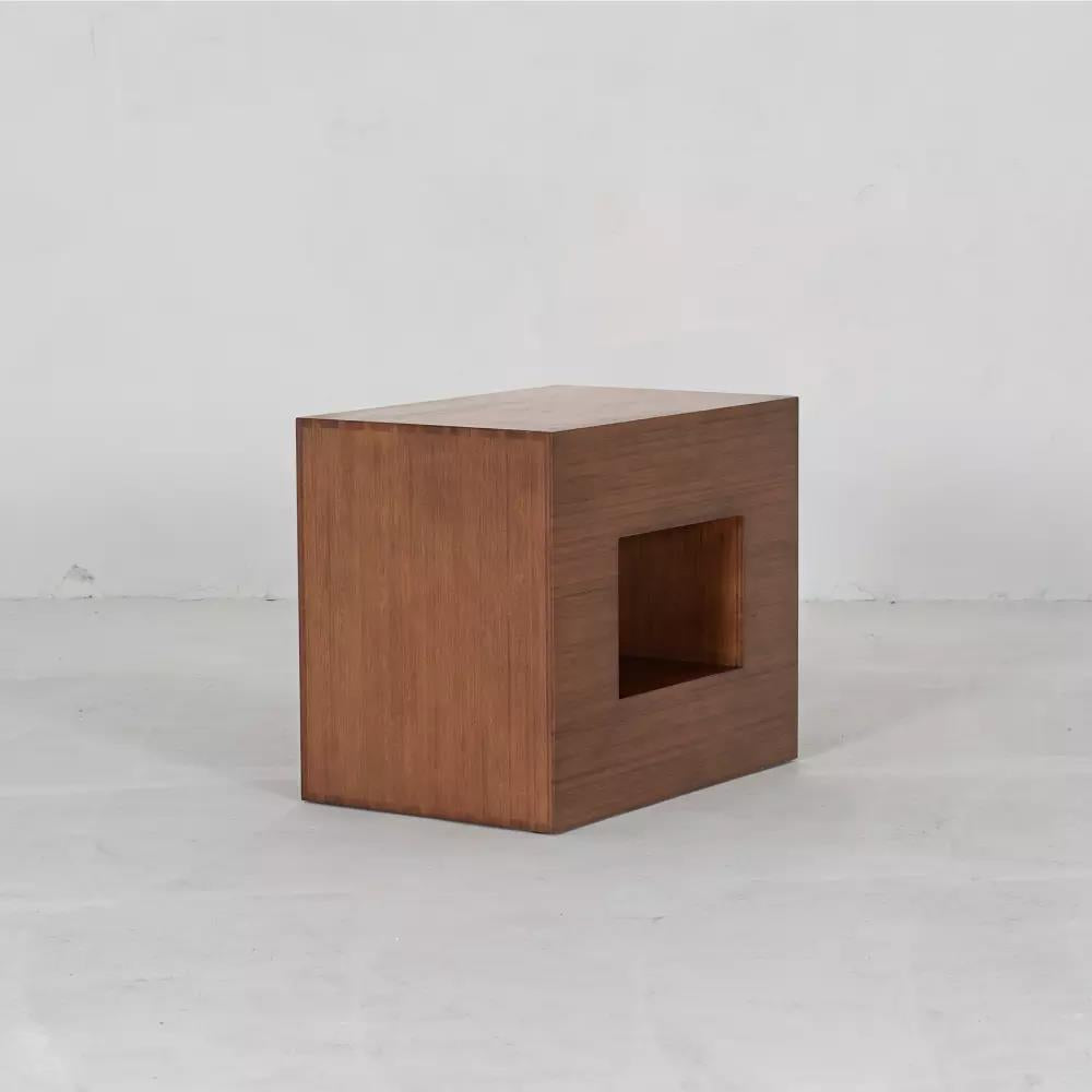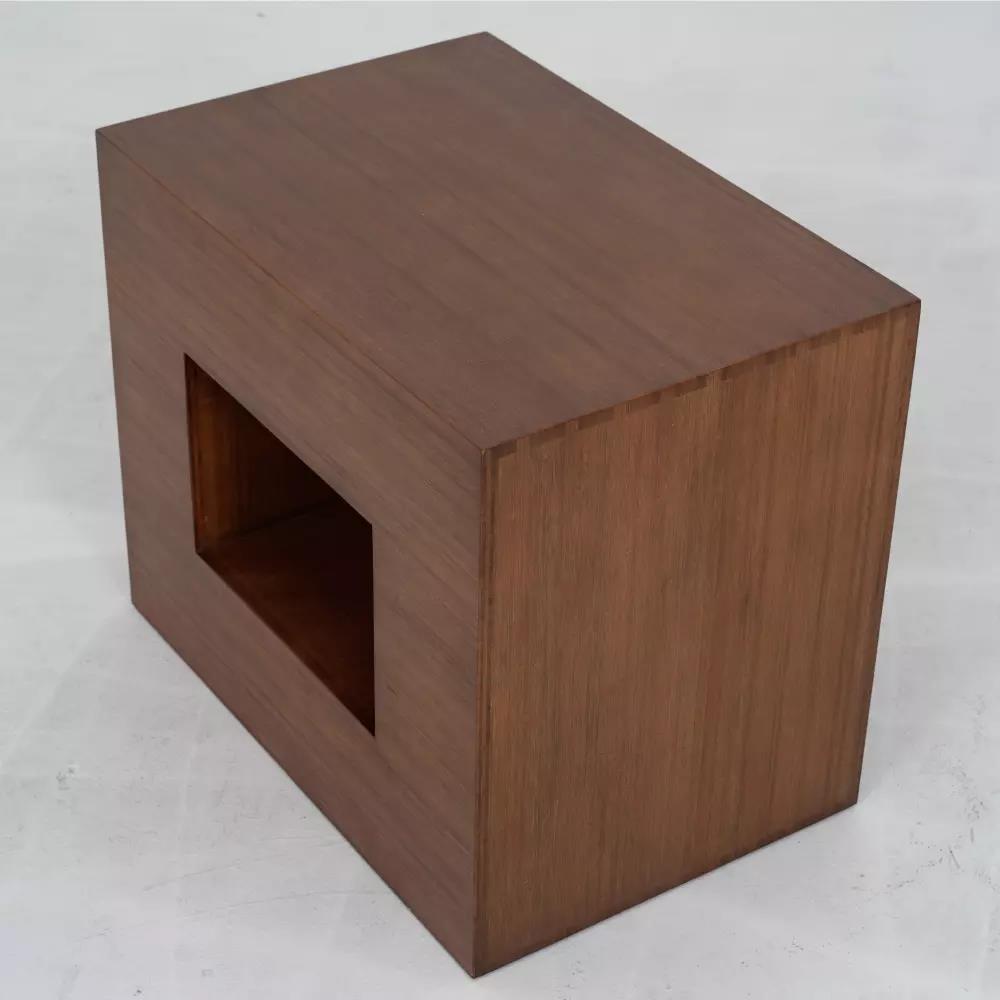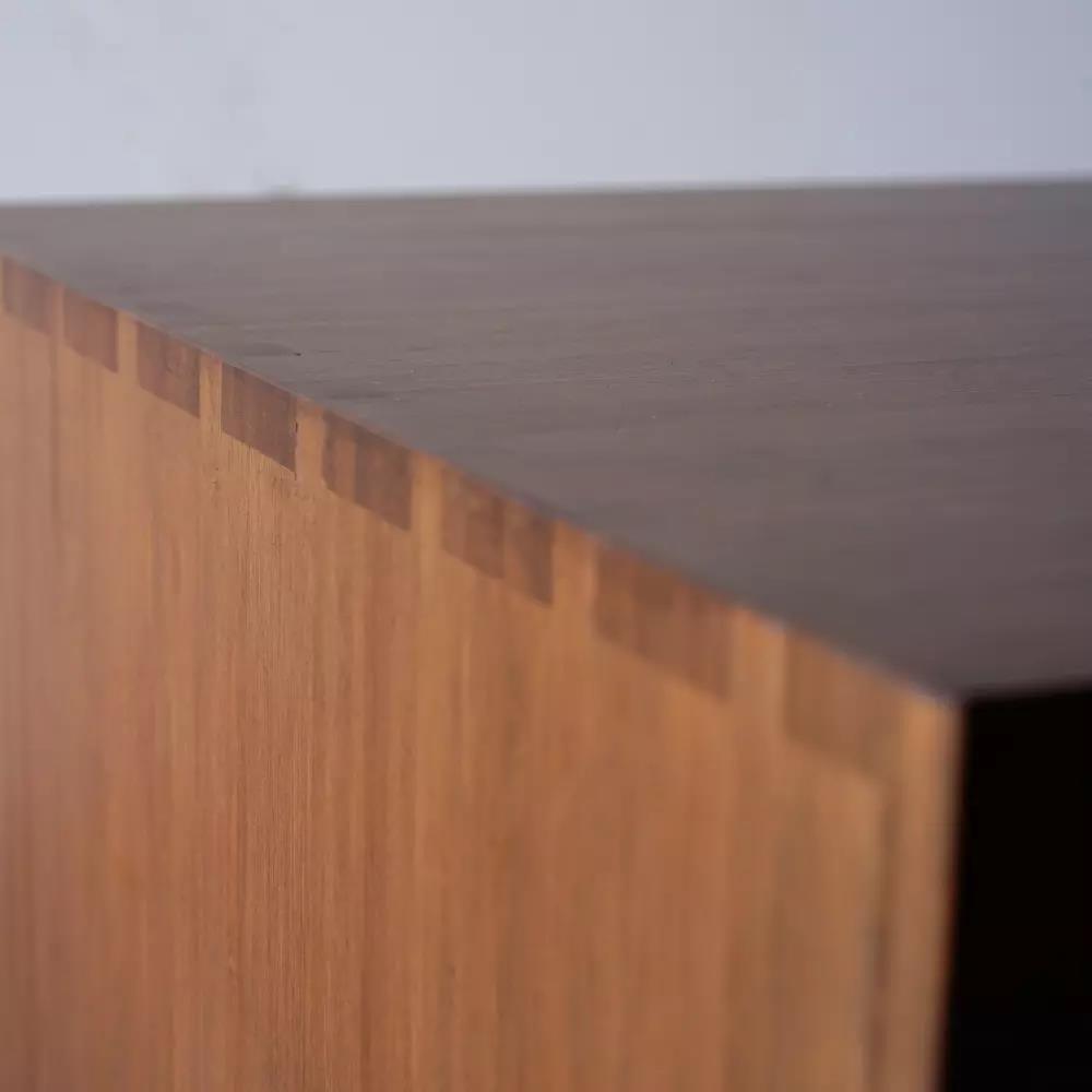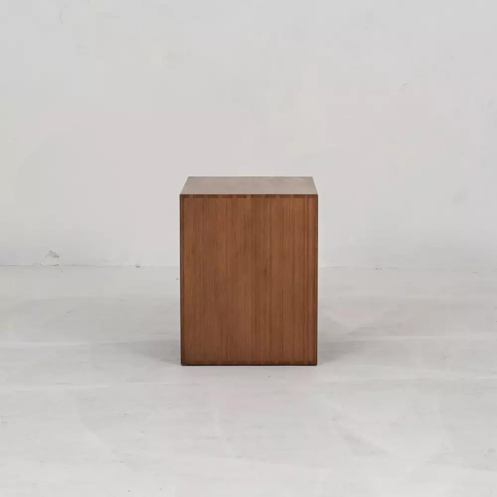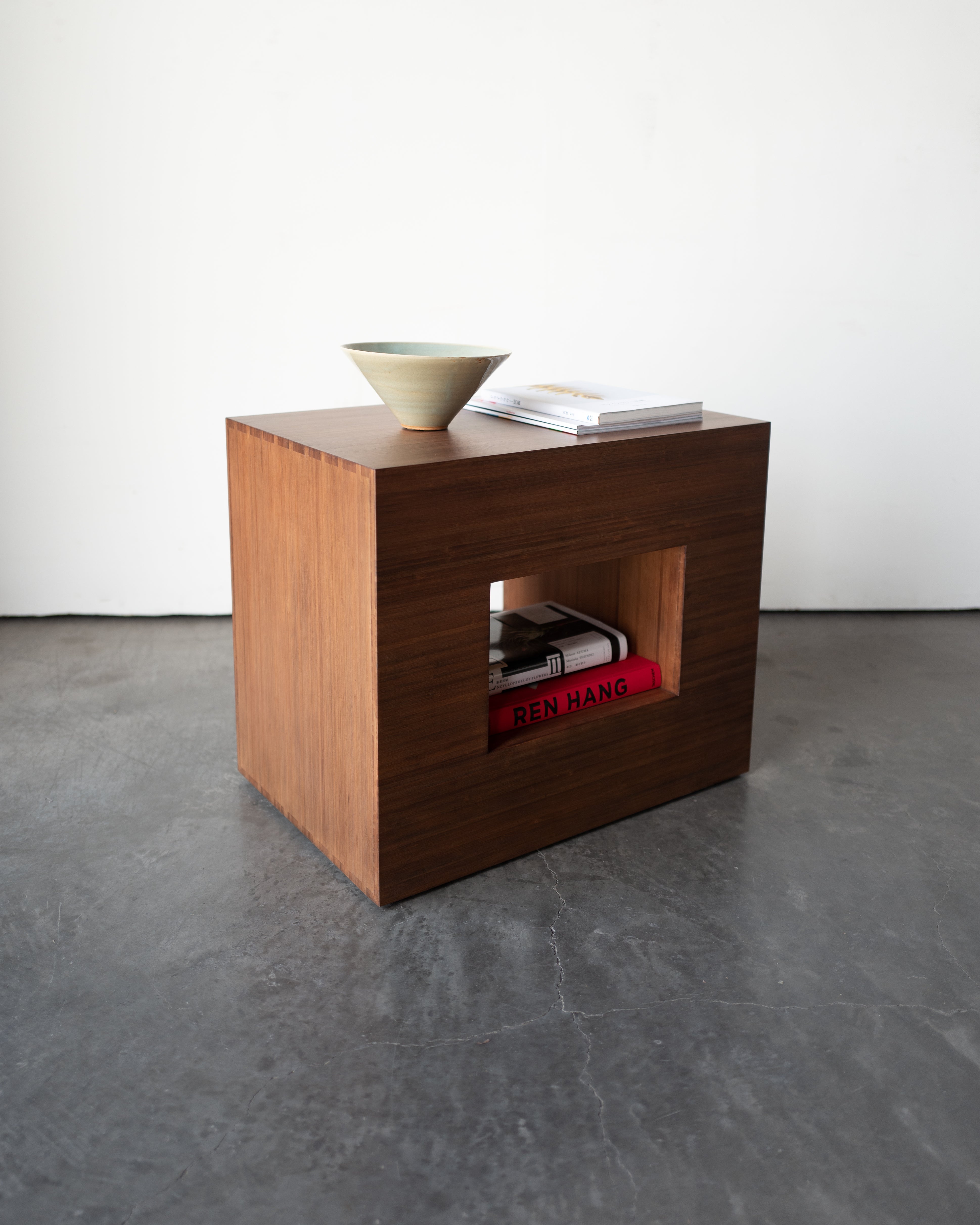 The Fen Side Table exudes a calm, grounded aura through its steady, firm angles and generous profile. Beautiful, exposed interlocking dovetail joints run along the table edge, highlighting the precise craftsmanship required to construct each piece.