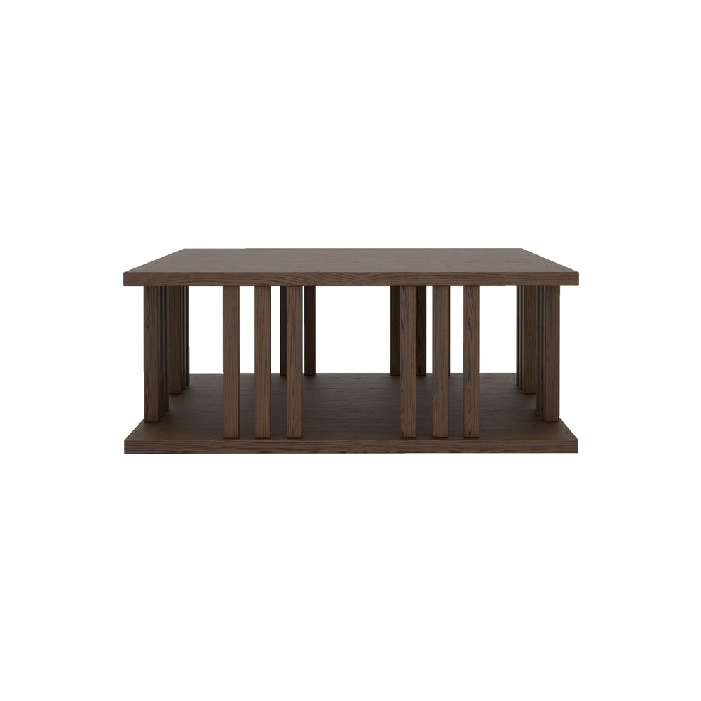 The bold Katsura Collection is inspired by the understated luxury of Asian heritage palace architecture that combines both feelings of modern and traditional design. The Katsura Square Cocktail Table features the Katsura collection's signature slatted frames, placed interestingly between the solid wood top and base, playing an elegant game of hide and reveal. Each of our products is unique due to the wood grain variation and hand crafted techniques. Exalt elegance in any living room when combined with another Katsura piece or Maria Yee furnishing.