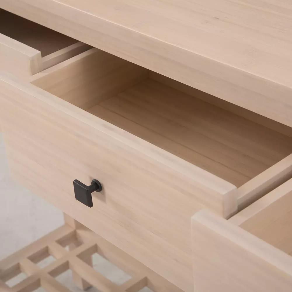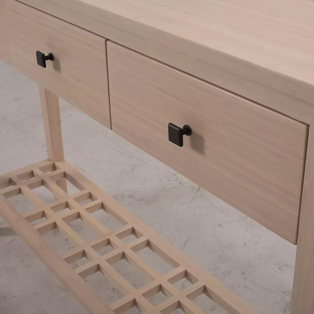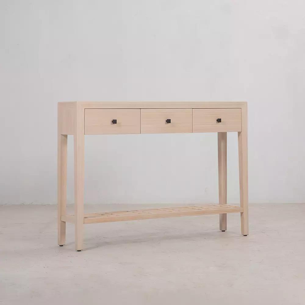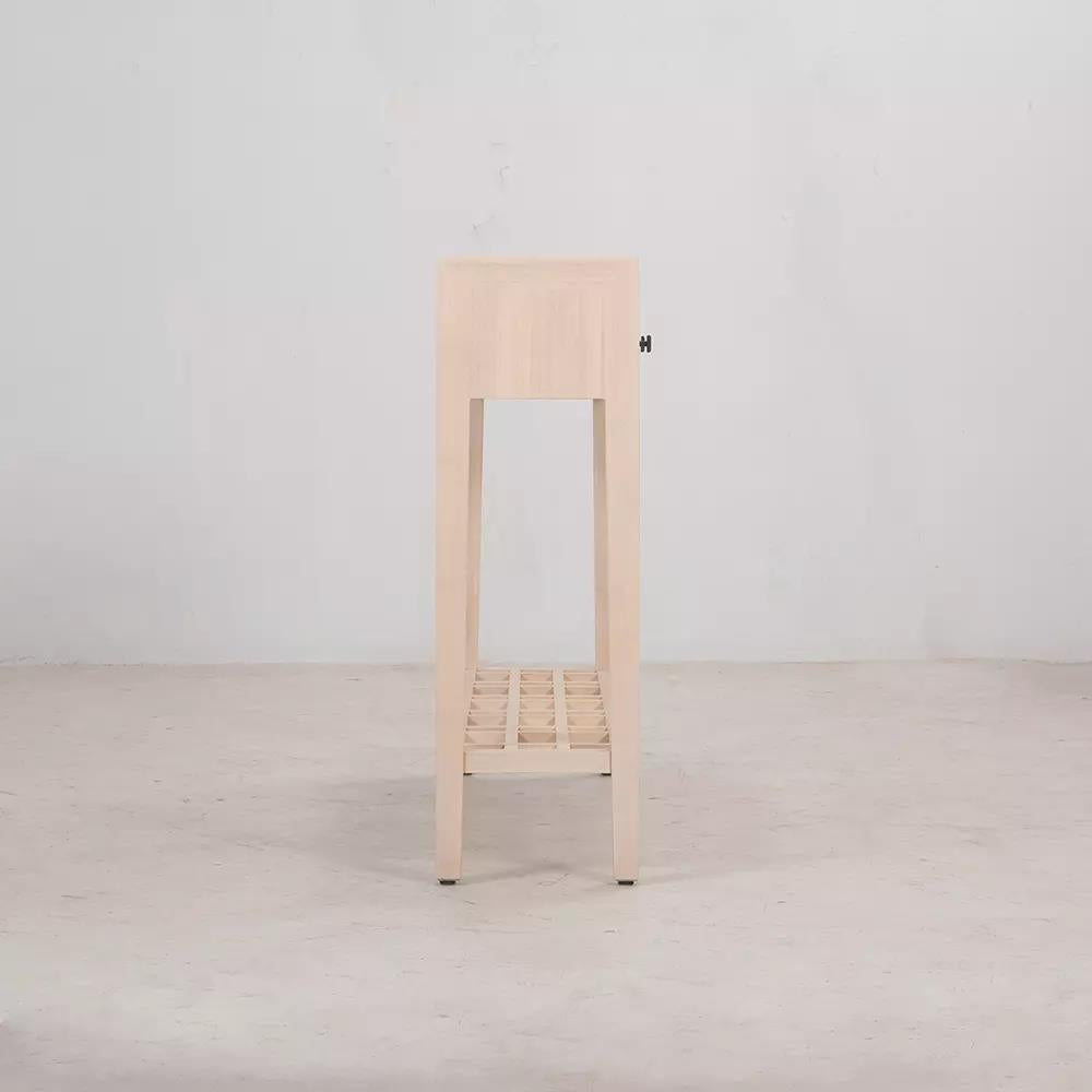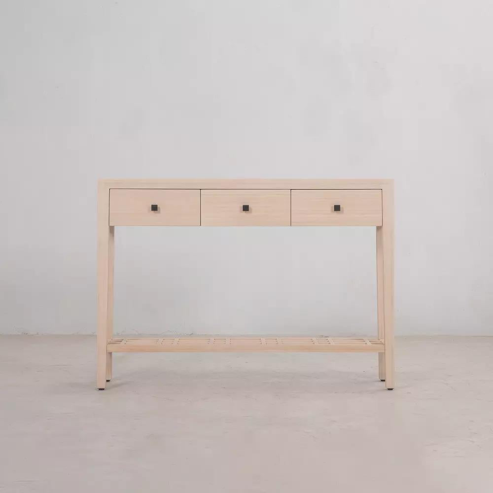 This beautiful console table is made from our BambooTimbre™ and is designed with three drawers and a bottom rack with a unique slat pattern. It is hand shaped to create a metro and modern feel and also offers you storage options, making it a useful and elegant addition to any entry way or living space. Choose from a variety of non-toxic, water-based finishes to complement your own style.